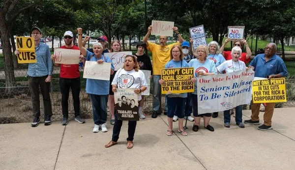 Constituency groups of the Dallas AFL-CIO continue to make friends by taking action with community activists. Last Saturday, the Texas Alliance for Retired Americans (TARA), Young Active Labor Leaders (YALL), and Labor Committee for Latin American Advancement (LCLAA) co-sponsored a protest against the daggers pointed at working families by Washington and Austin.