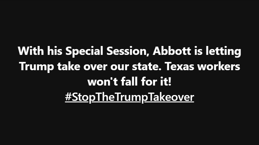 American labor is moving to halt the growth of Trump's dictatorship. In Texas, our most immediate battle is to stop unfair redistricting, which the state's Republicans have prioritized over flood relief and other desperate needs. The Texas AFL-CIO and local labor leaders need us to attend a major rally at 3:30PM July 28 at the University of Texas at Arlington, 701 S Nedderman Dr, Arlington, TX 76019. Sign up here.