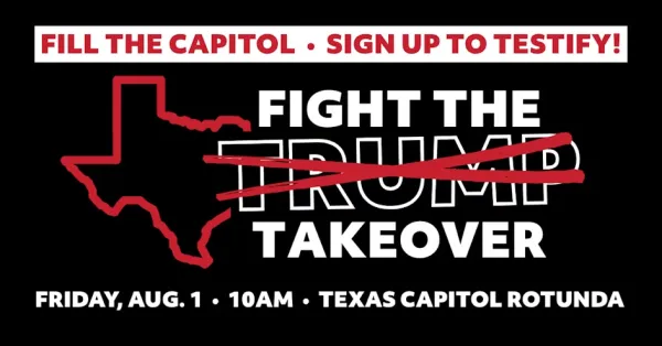 We need to show up and speak out. Texas is being used as a testing ground for Trump-style politics—extreme, divisive, and dangerous—but it shouldn’t be. It’s time to remind our leaders that Texans deserve fair maps and real solutions.