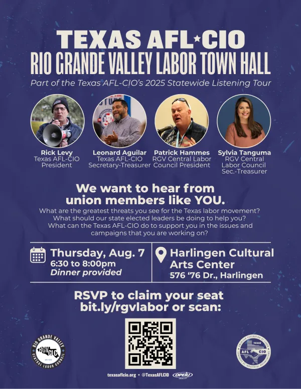 We want to hear from union members like YOU at our RGV Labor Town Hall!