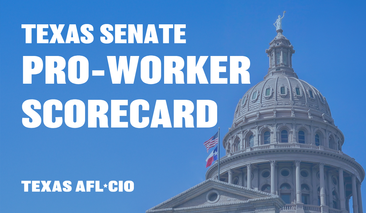 Members of the Texas Senate were graded on our Pro-Worker Scorecard by floor votes, committee votes, and bill sponsorships related to labor and Texas workers. View a breakdown of the scores here.